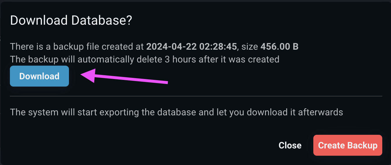 Export Databasebutton