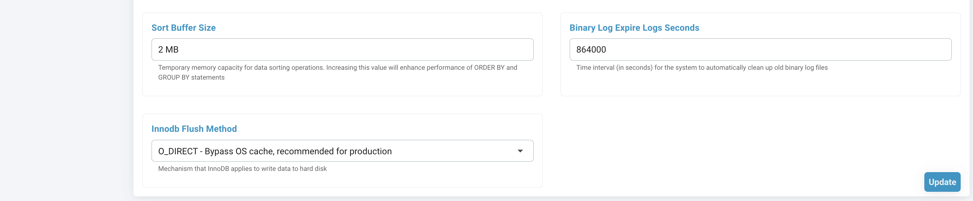 Update MySQL/MariaDB Configuration