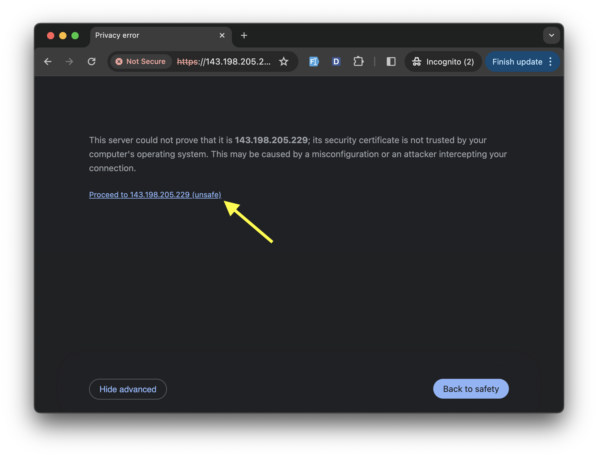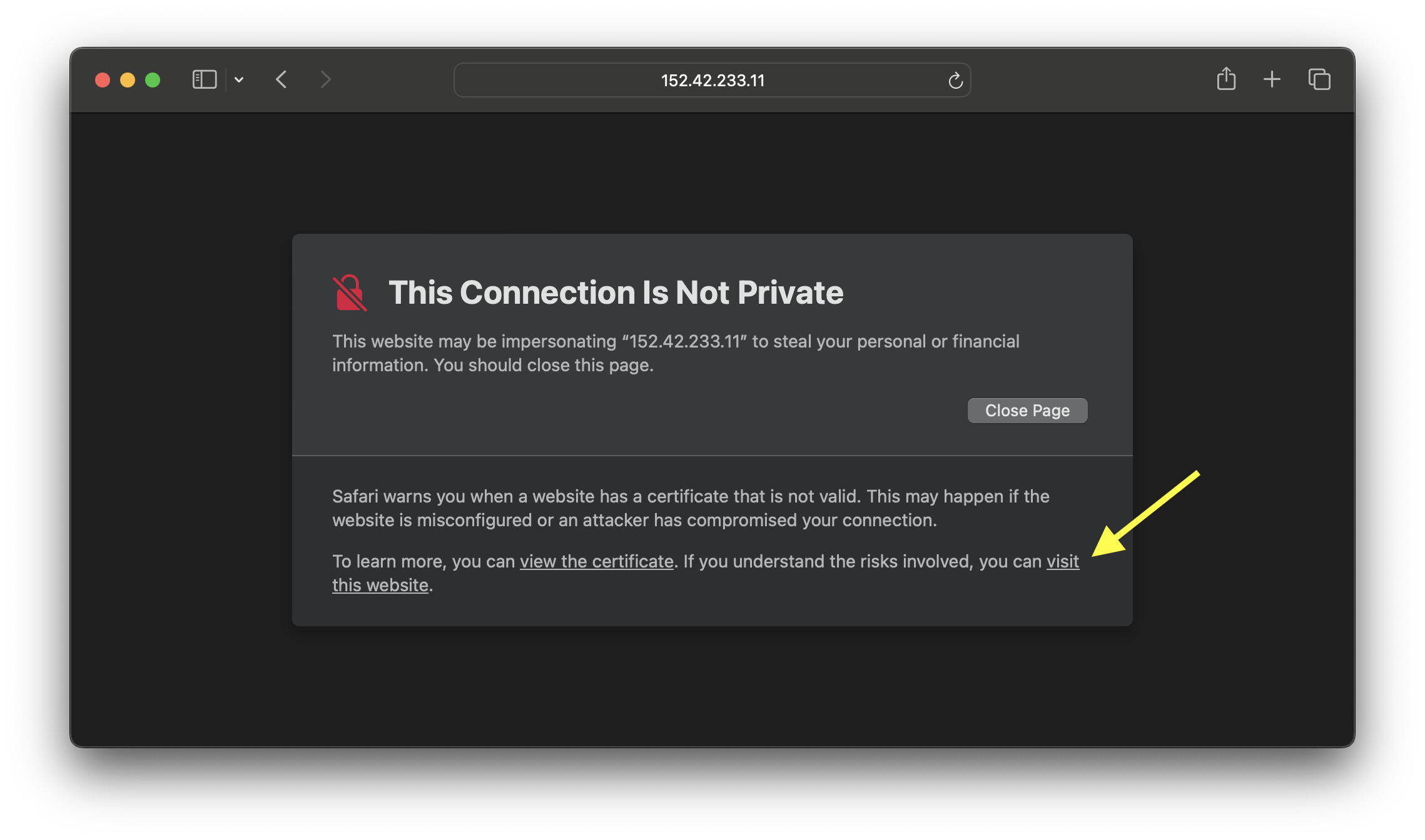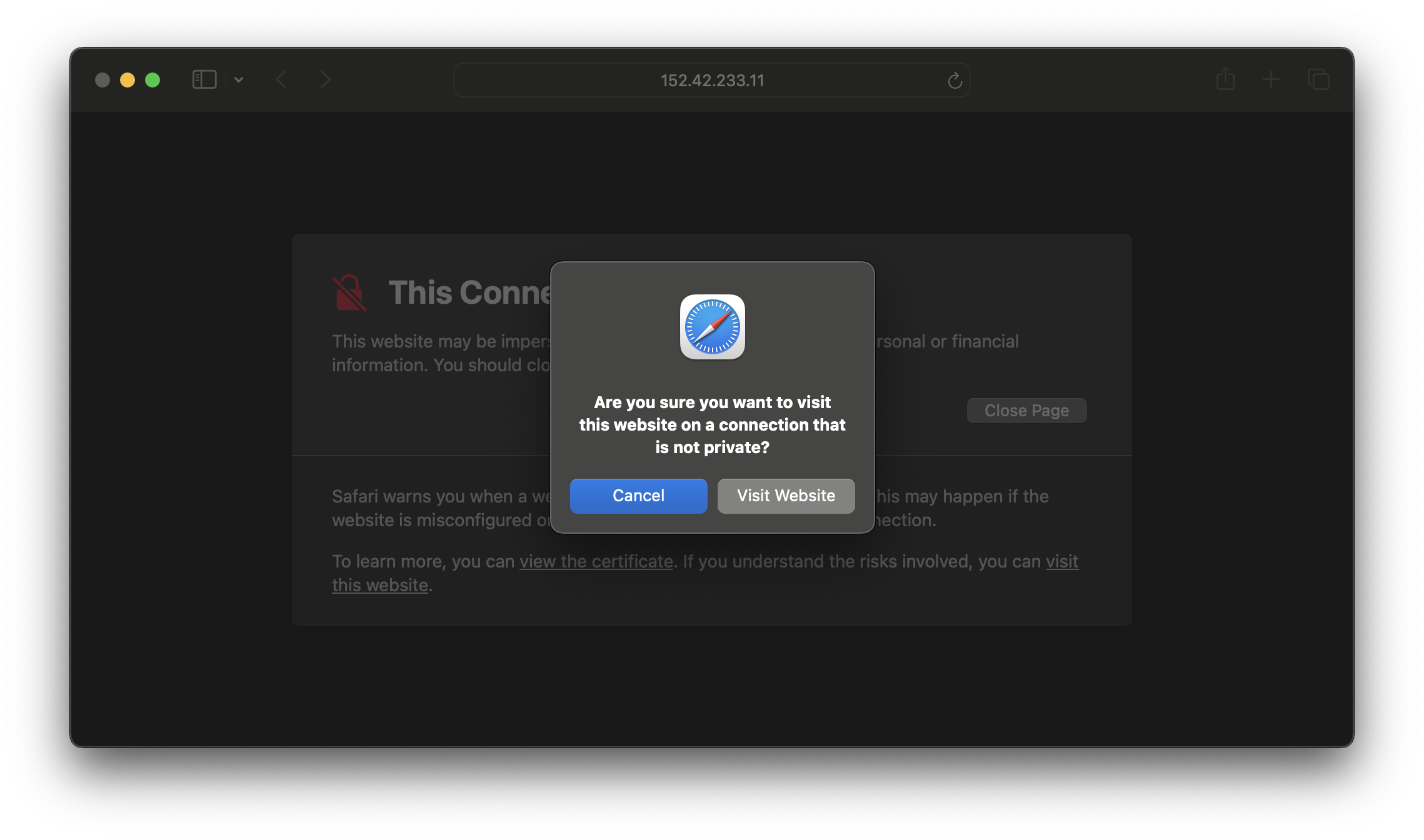 You can choose one of two ways: continue accessing or install an SSL certificate for the web admin