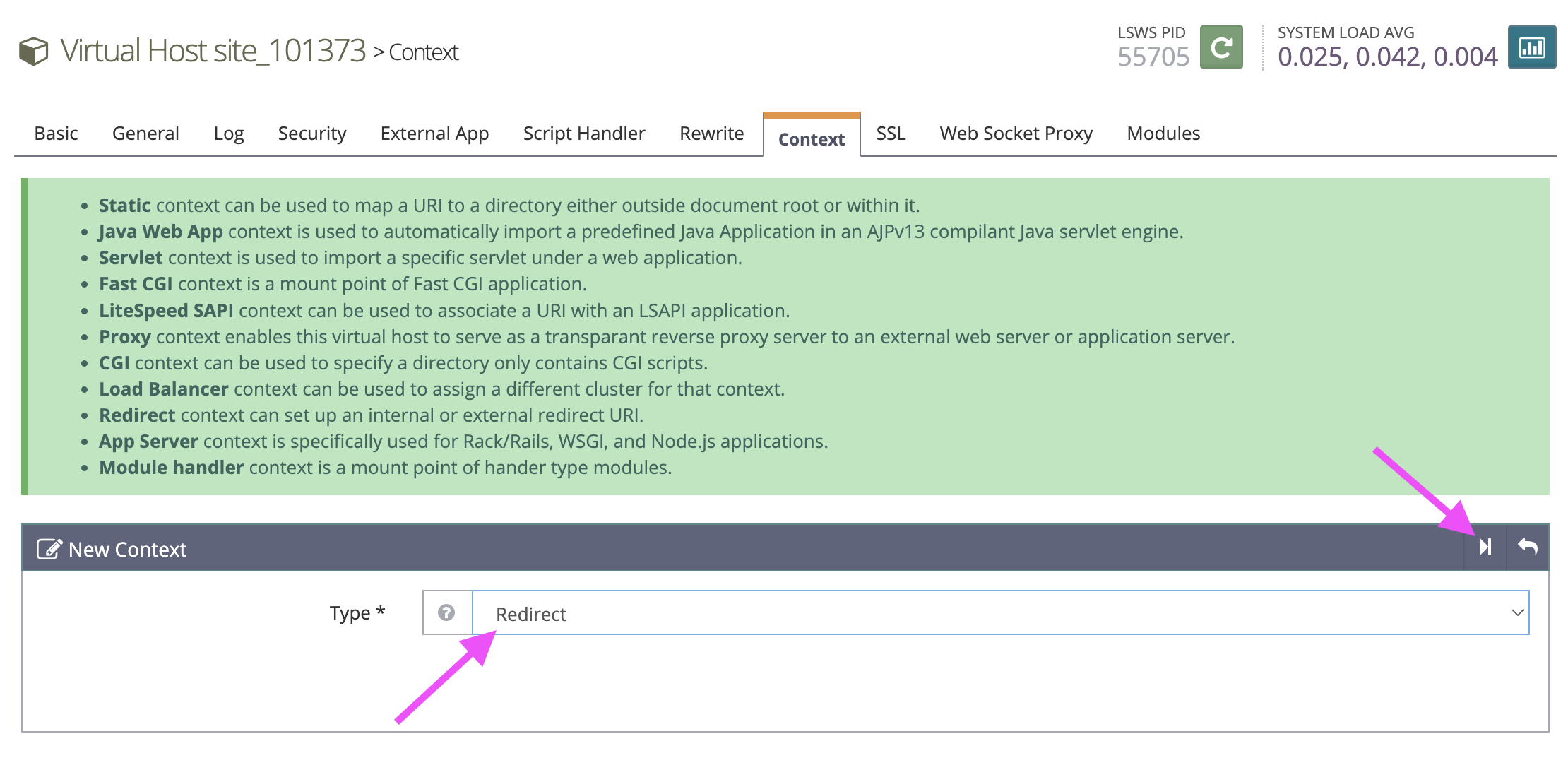 - Status Code: There are many types of HTTP codes. Because I redirected, I chose 301 (permanent redirect).