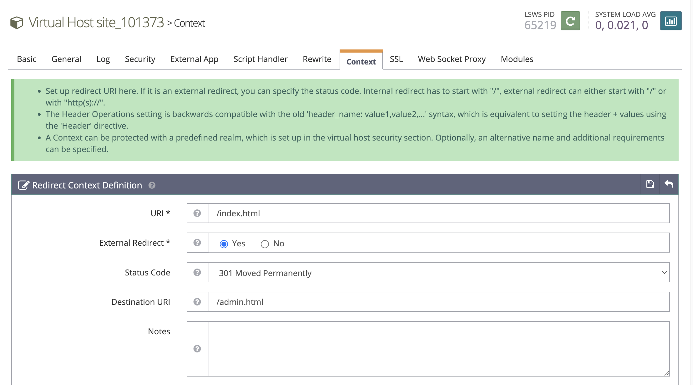 - URL: path to redirect. Here you only enter the URL. No domain name included (For example, here I put it /index.html)