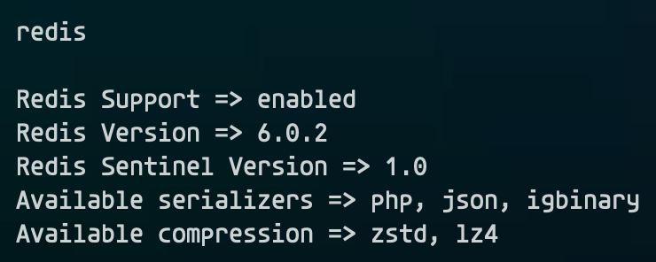 bashapt update && apt install liblz4-dev libzstd-dev pecl uninstall redis pecl install --configureoptions 'enable-redis-igbinary="yes" enable-redis-zstd="yes" enable-redis-lz4="yes"' redisIt will report an error related to php_ini but can be ignored.