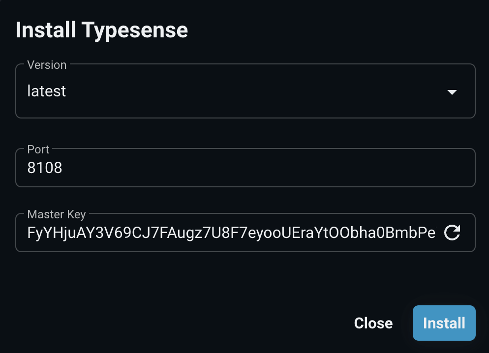 Go to the server's Applications tab, find the Typesense Server application and click install