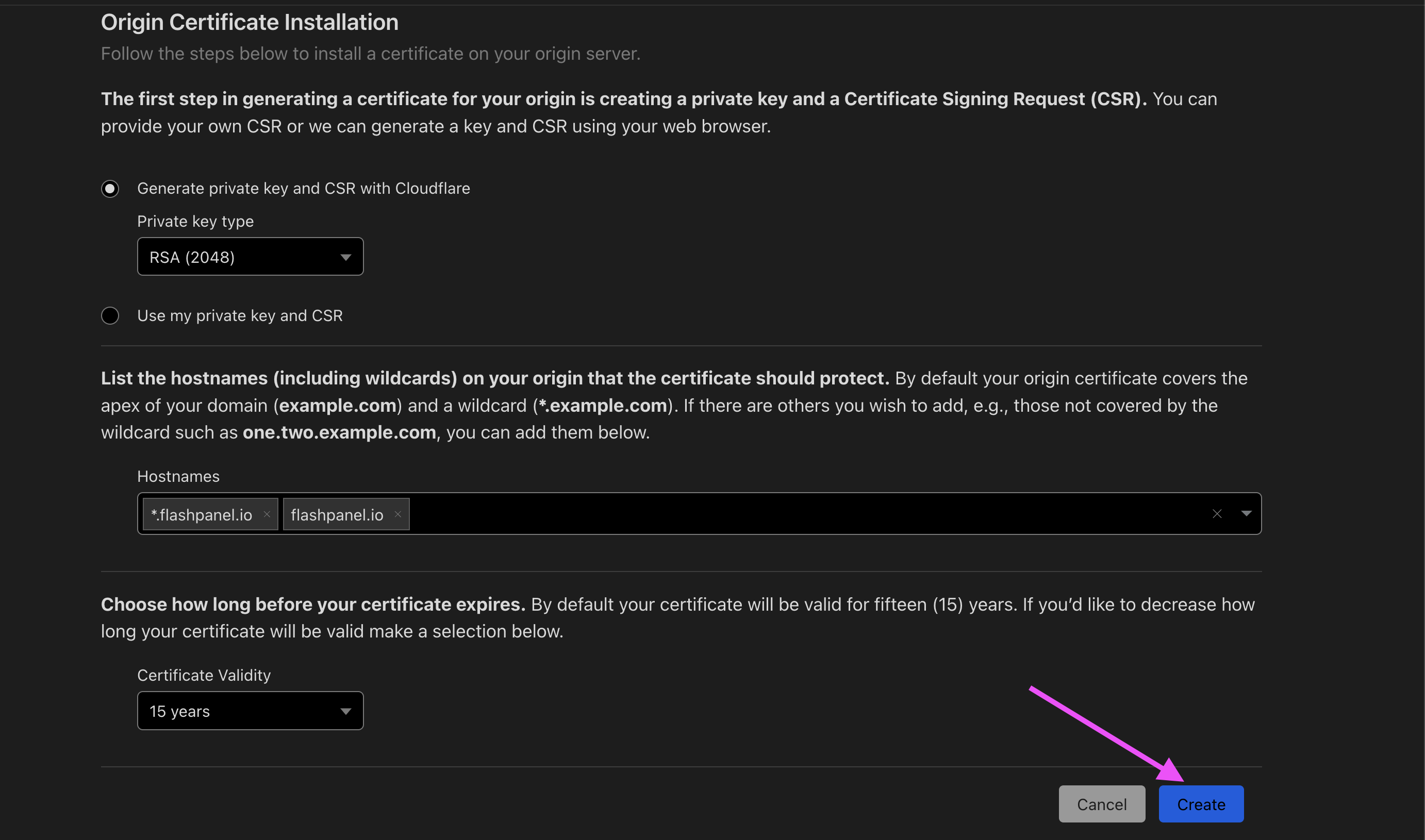 FlashPanel now supports automatic creation of 15-year Cloudflare SSL certificates with seamless activation.