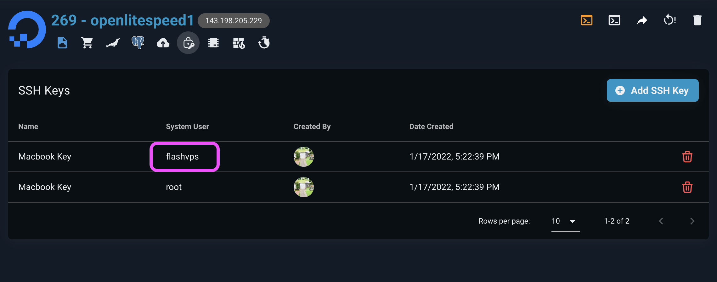 - Username: is the Linux system username that we choose when adding the SSH Key