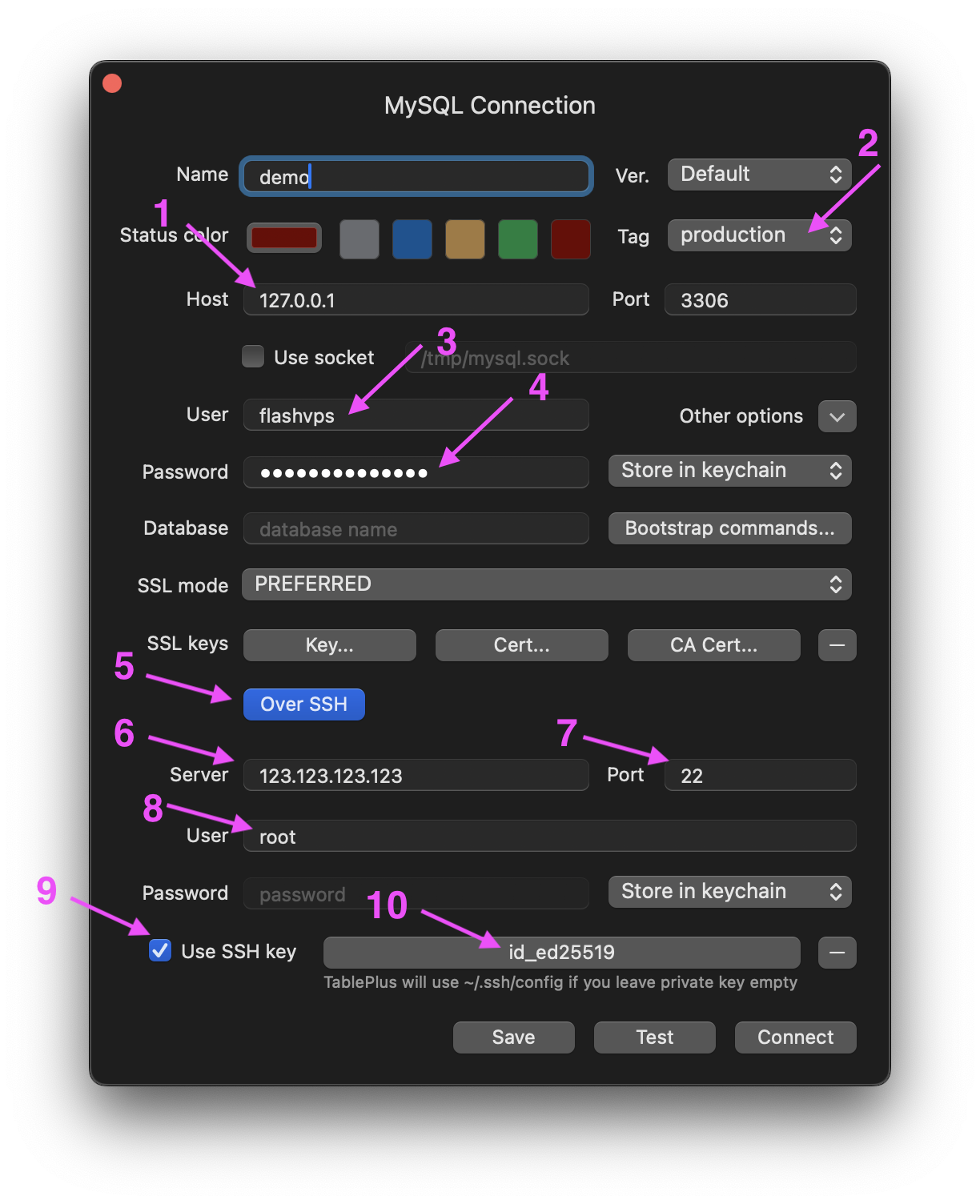 MariaDB or MySQL (SSH Tunnel) - IP: absolutely must be